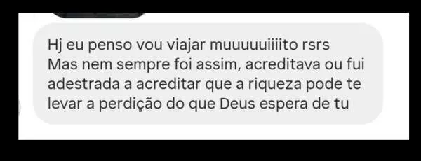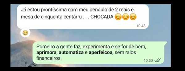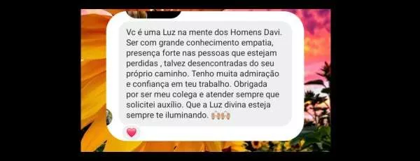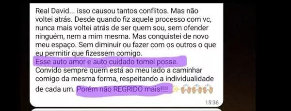 "Menino, apanhei mais do que sovaco de aleijado no Identidade e no Autoridade, mas realmente o Propósito é mel na chupeta viu!! Estou em paz, mente feliz, existe felicidade no final do arco-íris, muito obrigada por tudo, seu trabalho é super incrível!"